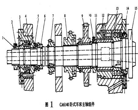 CA6140型臥式車床的主軸是一個空心階梯軸,其內(nèi)孔用于通過梆料或穿入鋼棒卸下頂尖,或通過氣動、液壓或電氣夾緊裝置的管道 、導(dǎo)經(jīng)。主軸前端的莫氏6號錐孔用于安裝前項尖或心軸,利用錐面配合的摩擦力直接帶動頂尖或心軸轉(zhuǎn)動。
