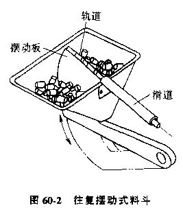 2) 擺動(dòng)式料斗,圖60-2為一種典型的擺動(dòng)式料斗結(jié)構(gòu)。擺動(dòng)板由凸輪或曲柄驅(qū)動(dòng),零件隨軌道擺動(dòng)到與滑道一直的威勢時(shí),方位正確的將進(jìn)入滑道,不正確的回落到料斗。