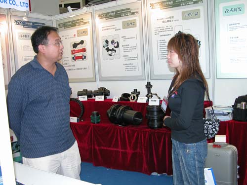 十多年來, 為客戶解決傳動(dòng)問題成了沈陽(yáng)三環(huán)的日常工作。 豐富的制造經(jīng)驗(yàn)、雄厚的技術(shù)力量、高度團(tuán)結(jié)的工作隊(duì)伍,使該廠可為客戶提供測(cè)繪、設(shè)計(jì)、制造、開發(fā)等一系列完備的技術(shù)服務(wù)。展臺(tái)上陳列了一系列的產(chǎn)品:膜片聯(lián)軸器、鼓形齒聯(lián)軸器、 齒式聯(lián)軸器、彈性套柱銷聯(lián)軸器、 脹緊聯(lián)接套(包括鎖緊盤)等等,另外還陳列了該廠自行開發(fā)研制的意境申請(qǐng)專利的對(duì)輪型膜片聯(lián)軸器等其它形式的聯(lián)軸器。記者為了留下這難得的資料,把這些產(chǎn)品都一一的攝入鏡頭。