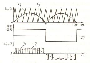 若三角波和正弦波的頻率成比例地改變,不論輸出頻率高低,每半周的輸出脈波數(shù)不變,即為同步調(diào)制式。