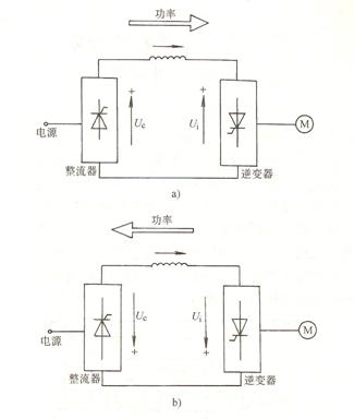 2.采用電流型變頻器時(shí) 對(duì)于電流型變頻器,再生時(shí)直流電流方向不變,而直流電壓的方向反向,所以整流器部分不需要可逆方式,用不可逆整流器即可。圖14示出電流型變頻器的直流電流與直流電壓的關(guān)系。