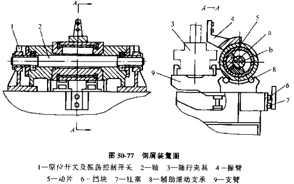 翻轉(zhuǎn)倒屑裝置見(jiàn)圖50-77。