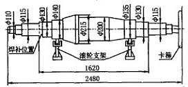 1 引言 從英國進(jìn)口的一臺1150hP同步電動機(jī),因運(yùn)行故障需更換轉(zhuǎn)軸,選用φ220 ×φ2490mm的40Cr鋼,切削加工前整材進(jìn)行調(diào)質(zhì)處理,后在半精車時不慎將兩軸承肩距離( 1620mm)車短了5mm,見圖1,為避免重大損失,對該軸進(jìn)行了焊補(bǔ)修理,由于轉(zhuǎn)軸已處于半精車階段,待磨面直徑僅留有0.3mm~0.5mm的磨削余量,非磨面都已達(dá)到圖紙尺寸要求,使工件在焊補(bǔ)后不能再采用入爐焊后熱處理工藝,但這樣就無法保證質(zhì)量,在對該轉(zhuǎn)軸采取以下焊補(bǔ)方法后,保證了其質(zhì)量及使用要求。