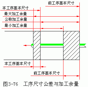 圖 3-76 表示了工序尺寸公差與加工余量間的關系。余量公差是加工余量間的變動范圍,其值為