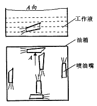油箱攪拌器和工作液槽攪拌器是本工作液循環(huán)系統(tǒng)的關(guān)鍵,也是本實(shí)驗(yàn)裝置與普通電火花機(jī)床的顯著區(qū)別之處。油箱攪拌器在工作原理和結(jié)構(gòu)上可以有三種方式,如圖3、圖4、和圖5所示。圖3的結(jié)構(gòu)是利用電動(dòng)機(jī)帶動(dòng)葉片做旋轉(zhuǎn)運(yùn)動(dòng),來攪動(dòng)工作液。其優(yōu)點(diǎn)是結(jié)構(gòu)簡(jiǎn)單:缺點(diǎn)是由于離心力的作用,油箱中遠(yuǎn)離葉片中心處的微粉濃度要比靠近葉片中心處的高,造成微粉分布不均勻,另外,這種結(jié)構(gòu)一經(jīng)確定,不易調(diào)整攪拌器在油箱中的位置。圖4利用油泵將工作液從油箱A向A中抽出,通過安裝在油箱四周的噴油嘴注射回油箱中,形成湍流來達(dá)到攪拌工作液的目的。特點(diǎn)是微粉在工作液中分布比較均勻,而且結(jié)構(gòu)簡(jiǎn)單,噴油嘴位置調(diào)整方便:缺點(diǎn)是由于增加了油泵,比前者成本高。圖5綜合了前兩種攪拌方式,用電動(dòng)機(jī)帶動(dòng)彎管旋轉(zhuǎn),再將工作液從彎管臂中噴出,因此攪拌后,工作液中微粉的分布要比前兩者均勻;但結(jié)構(gòu)復(fù)雜,成本也高得多。作者在本裝置的設(shè)計(jì)中采用圖4的結(jié)構(gòu),實(shí)踐證明攪拌效果達(dá)到預(yù)期目標(biāo)。工作液槽攪拌器的工作原理與油箱攪拌器大致相同,不再贅述。