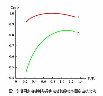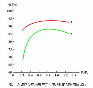 該電機(jī)不需要無功勵(lì)磁電流,可顯著提高功率因數(shù)(可高達(dá)1),并減少了定子電流和定子電阻損耗。在電機(jī)穩(wěn)定工作時(shí),轉(zhuǎn)子和定子磁場(chǎng)同步運(yùn)行,轉(zhuǎn)子無感應(yīng)電流,也就不存在轉(zhuǎn)子電阻損耗,兩者使電動(dòng)機(jī)效率提高2%~8%,而且該電機(jī)負(fù)載率(P2/PN)在25%~120%范圍內(nèi)均可保持較高的效率和功率因數(shù),使輕載運(yùn)行時(shí)節(jié)能效果更顯著。