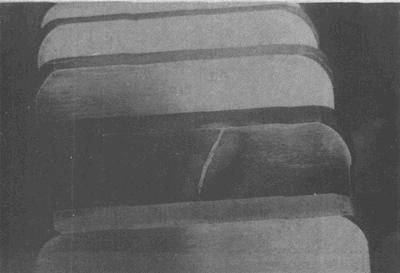 由于一個(gè)或多個(gè)原因,諸如磨削不當(dāng)、熱處理不當(dāng)、應(yīng)力過(guò)大或材料缺陷等,齒輪上可出現(xiàn)裂縫和裂紋。這些情況下面術(shù)語(yǔ)中分別說(shuō)明。