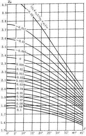 式中:zn1,zn2——小、大(斜)齒輪當量齒數(shù)。對于內(nèi)嚙合齒輪,式中(150)中的,zn2應(yīng)取為無限大。