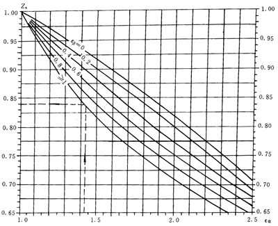 重合度系數(shù)Yε是將載荷由齒頂轉(zhuǎn)換到單對齒嚙合區(qū)外界點的系數(shù)。