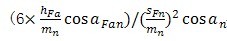 sFn——齒根危險截面齒厚。外齒輪由式(181)計算,內(nèi)齒輪按式(197)計算。