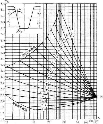 對于齒形角an為20°的齒輪,Ysa可按式(210)計算。對于其他齒形角的齒輪,可按此式近似計算Ysa。