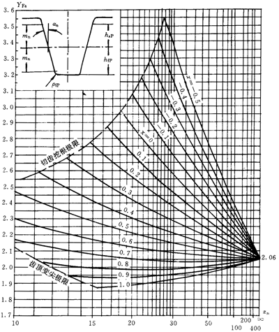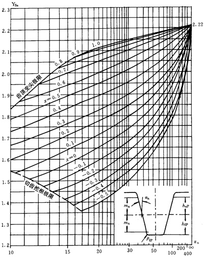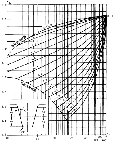 應(yīng)力修正系數(shù)Ys和Ysa是將名義彎曲應(yīng)力換算成齒根局部應(yīng)力的系數(shù)。它考慮了齒根過渡曲線處的應(yīng)力集中效應(yīng),以及彎曲應(yīng)力以外的其他應(yīng)力對齒根應(yīng)力的影響。