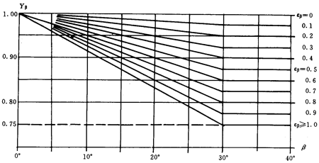 上面式中:當εβ>1時,按εβ=1計算,當Yβ<0.75時,取Yβ=0.75;當β>30°時,按β=30°計值。