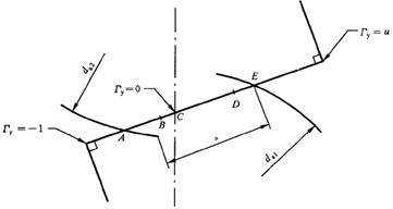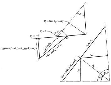 對(duì)于改寫的運(yùn)動(dòng)學(xué)公式作如下假充5)(5)這些假設(shè)對(duì)曲率半徑作了適當(dāng)?shù)慕,但不包括用?dāng)量圓柱齒輪副代替錐齒輪。)[43],見圖A.2。