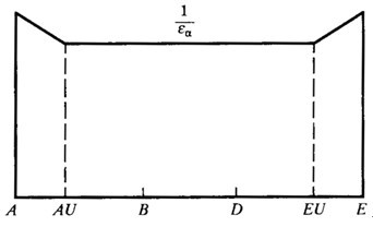 錐齒輪的邊疆接觸區(qū)為稍帶錐度的帶狀形。然而,在大多數(shù)情況,可較好地用平行的帶狀接觸區(qū)來近似,連同兩個(gè)切向速度的重合并在方向上與長軸垂直,尤其是當(dāng)曲率半徑的正確定值和赫茲接觸帶已知時(shí),可直執(zhí)著使用權(quán)原來的公式(A.1)。為了方便起見,公式可以被改寫,即用直線來近似“8”字作用線,并且系數(shù)用錐齒輪的一般量來表達(dá)。