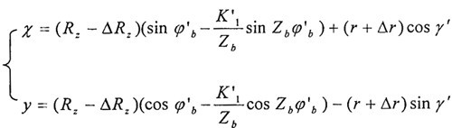 擺線輪的齒廓修形量是影響RV減速器傳動(dòng)性能的重要參數(shù),首先需建立一個(gè)概括上述的前兩種修形方法的通用擺線輪齒廓方程式,只要將標(biāo)準(zhǔn)齒廓方程式(3-l)中的Rz以(Rz-△Rz)代替,K1以K1′=e*zb/(Rz-△Rz)代替,r以(r+△r)代替,即可得到通用擺線輪齒廓方程式為: