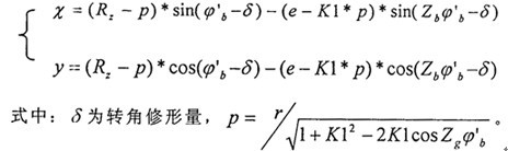雖然實(shí)際生產(chǎn)中很少使用轉(zhuǎn)角修形法,但研究移距修形量和等距修形量組合的方法時(shí),所得齒廓常常要與轉(zhuǎn)角修形的齒廓進(jìn)行比較,因此在此需建立轉(zhuǎn)角修形的齒廓方程式: