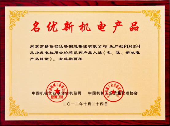 近期,由中國機械工業(yè)質(zhì)量管理協(xié)會和中國機械工業(yè)聯(lián)合會機經(jīng)網(wǎng)共同主辦的“名優(yōu)新機電產(chǎn)品”評選活動中,南京高精傳動設(shè)備制造集團有限公司(簡稱:南高齒)子公司南京高速齒輪制造有限公司研制的的FD4094型風電齒輪箱系列產(chǎn)品成功入選《名、優(yōu)、新機電產(chǎn)品目錄》。