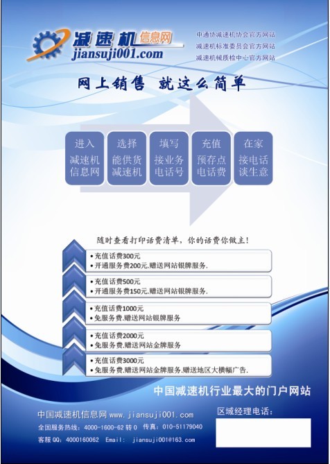 1、在減速機信息網(wǎng)會員后臺填寫你接業(yè)務(wù)的電話號碼 2、選擇你能銷售的產(chǎn)品。 3、在自己帳戶里充值話費。 4、開通網(wǎng)上銷售。 5。在家等業(yè)務(wù)電話,銷售產(chǎn)品。