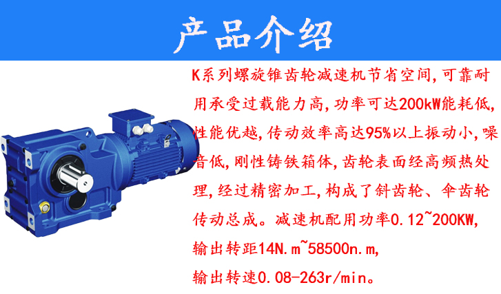 1、K螺旋錐齒輪減速機結合國際技術要求制造,具有很高的科技含量。