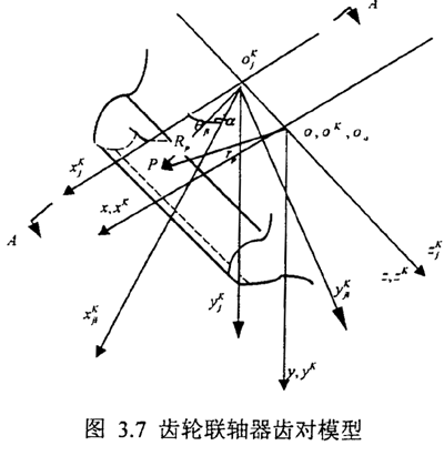 如圖3.7所示,O-XYZ;是固定坐標(biāo)系,O是內(nèi)外齒輪對(duì)中時(shí)內(nèi)外齒輪中心Z是齒傳輸線聯(lián)軸器的軸向,OK-XKYKZK:分別代表固定在內(nèi)外齒輪上的坐標(biāo),OK是內(nèi)外齒輪中心(k=N,w)表示內(nèi)處齒輪),