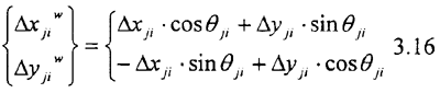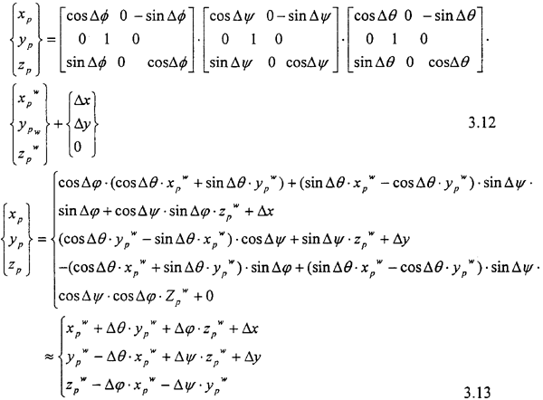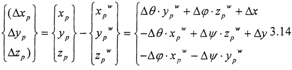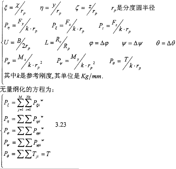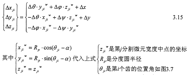 ,Δψ,Δθ為微小位移,則外齒輪任意一點(diǎn)PW(XPW,YPW,ZPW)在外齒輪相對(duì)內(nèi)齒輪發(fā)生位移后,在靜止坐標(biāo)系內(nèi)的坐標(biāo)為:PW(XP,YP,ZP)其值由式3.12~3.13定。