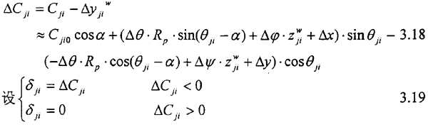 上式ΔCji--<0說明內(nèi)外齒發(fā)生相對(duì)位移后,齒面相對(duì)間隙為負(fù),即內(nèi)外對(duì)應(yīng)齒對(duì)在j微元第i齒對(duì)處相互接觸,δji可近似的看作內(nèi)外齒在j微元第i齒對(duì)處的相對(duì)變形。ΔCji-->0說明內(nèi)睜生相對(duì)位稱后,齒面相對(duì)間隙為正,內(nèi)外對(duì)應(yīng)齒對(duì)在j,I處存在間隙,則可以認(rèn)為內(nèi)外齒在ji處的相對(duì)變形δji=0。