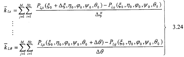0,ψ0,θ0)。如果沒有達(dá)到精度則修改θ0值重復(fù)以上計(jì)算。得到靜平衡位置后再利用式3.24求得25個(gè)剛度系數(shù)。