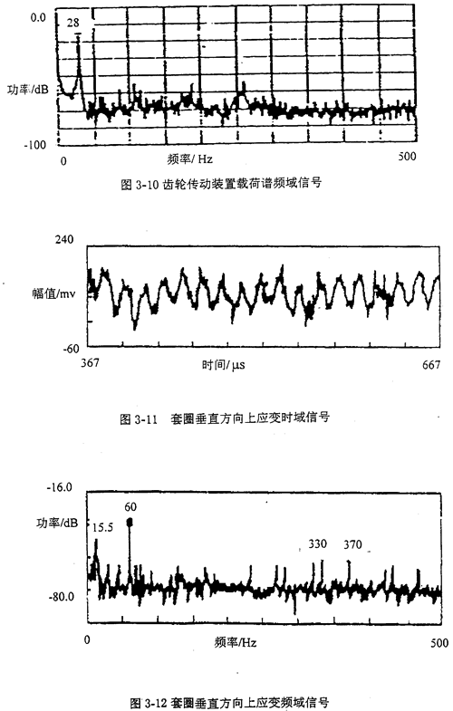 (3)在齒輪傳動(dòng)裝置的軸承外圈套圈上拾取的應(yīng)變信號能直接全部反映齒輪傳動(dòng)裝置內(nèi)的軸系部件(或稱傳動(dòng)零件)的故障振動(dòng)信號,利用故障診斷特征參數(shù)-傳動(dòng)零件的故障振動(dòng)頻率成份和頻率處的功率對此信號進(jìn)行分析,可對齒輪傳動(dòng)裝置內(nèi)的軸系部件進(jìn)行正確的故障診斷。
