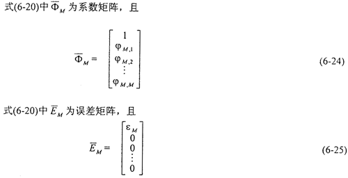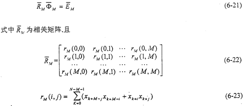 相關(guān)矩陣(6-22)式表示為T(mén)oeplity矩陣和Hankel矩陣相乘,使求解AR(M)模型參數(shù)