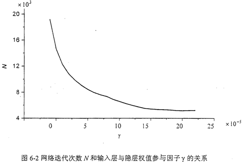 以表6-1標(biāo)準(zhǔn)訓(xùn)練樣本為例,采用MBP法,網(wǎng)絡(luò)有較好的收斂性,訓(xùn)練速度有較大的提高,見(jiàn)圖6-2。圖中,當(dāng)γ=0時(shí),MBP法即為普通的BP算法。