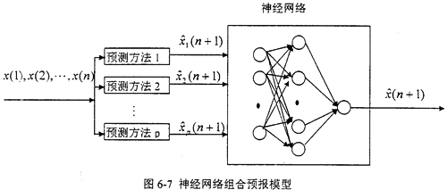 圖6-7中,神經(jīng)網(wǎng)絡(luò)的輸入為p種預(yù)測方法(包括AR、ARMA、回歸、灰色和直接神經(jīng)預(yù)測等模型)的輸出