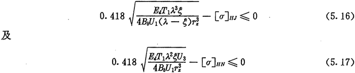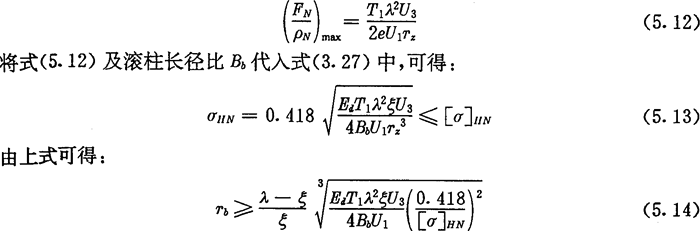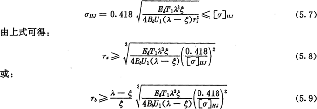 上式為根據(jù)內(nèi)齒圈與外滾子的許用接觸應(yīng)力所確定的激波器半徑的取值范圍。顯然激波器半徑Tb的取值應(yīng)同時(shí)滿足式(5.9)及式(5.14)的要求。