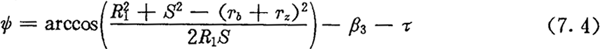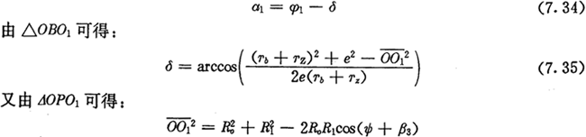由圖7.2可知,當(dāng)激波器轉(zhuǎn)角φ1=0時,擺桿處理初始位置,即擺動角度ψ=0,此時激波器回轉(zhuǎn)中心O至內(nèi)滾子中心O1的距離