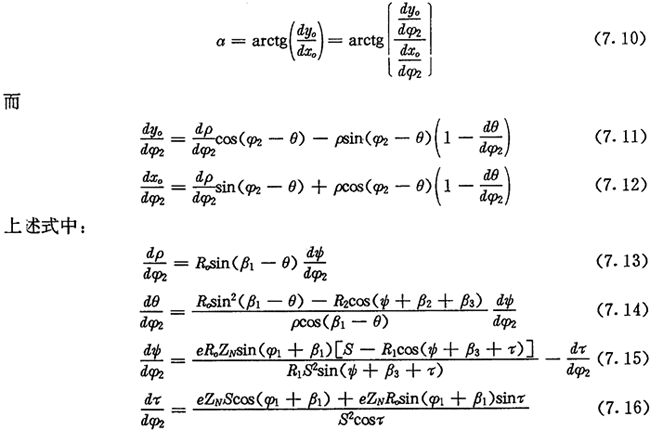 之內(nèi),只能使整個齒廓曲線的一部分由方程式(7.9)正確表示。為了使齒廓上所有的點都能用方程式(7.9)來正確計算,α的表示式應(yīng)為: