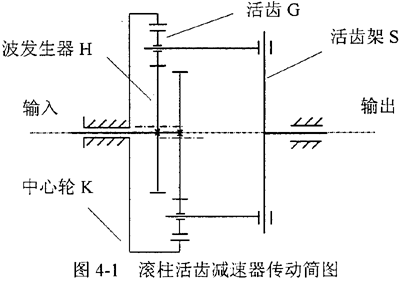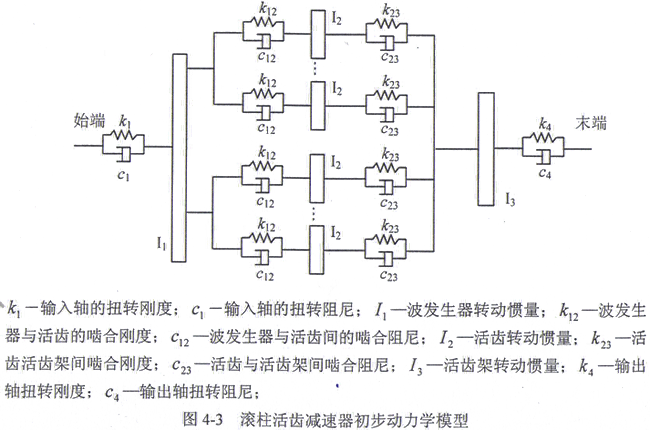 本章在分析該系統(tǒng)結(jié)構(gòu)的基礎(chǔ)上,擬采用適合系統(tǒng)扭轉(zhuǎn)振動分析的以集中參數(shù)模型表示的傳遞矩陣法建立滾柱活齒傳動的扭振動力學模型,并求解其動態(tài)參數(shù)和能量分布。并對減速器系統(tǒng)進行計算、分析和評價,找出其薄弱環(huán)節(jié),為進一步提高動態(tài)特性提供理論依據(jù)。