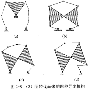 由(3)圖,取不同的構(gòu)件為機(jī)架,經(jīng)過特定化后,也可轉(zhuǎn)化為四種導(dǎo)出機(jī)構(gòu),如圖2-8。