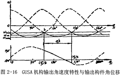 圖2-15顯示是其中一套傳動(dòng)機(jī)構(gòu)的機(jī)構(gòu)簡圖,該機(jī)構(gòu)有兩自由度,動(dòng)力機(jī)驅(qū)動(dòng)曲柄l,作為“輸入1”,“輸入2”是一螺旋機(jī)構(gòu),將輸入的旋轉(zhuǎn)運(yùn)動(dòng)轉(zhuǎn)化為桿7的往復(fù)運(yùn)動(dòng),改變滑塊3在水平方向的位置,從而改變機(jī)構(gòu)的桿長比例,使得桿5的輸出速度發(fā)生變化,達(dá)到變速的目的。桿5是擺動(dòng)桿,且輸出速度并不平穩(wěn),所以變速器是由三套連桿機(jī)構(gòu)以相位差120度三相組成,桿5又兼做超越離合器的外環(huán),經(jīng)超越離合器濾波后產(chǎn)生一較平穩(wěn)單向脈動(dòng)轉(zhuǎn)動(dòng)輸出,輸出軸的瞬時(shí)轉(zhuǎn)速等于三相七桿機(jī)構(gòu)中與輸出軸的相對轉(zhuǎn)才最大的搖桿擺動(dòng)角速度,如圖2-16所示。