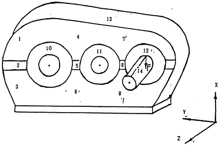 沿X向敲擊試件SHQ40上輸入軸上的14點并記錄測點12的響應(yīng)信號,用于分析計算。