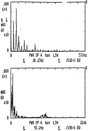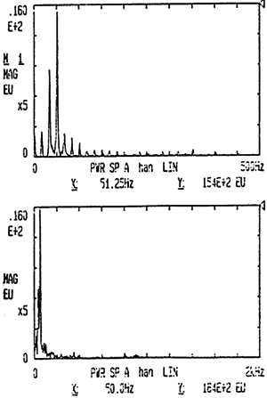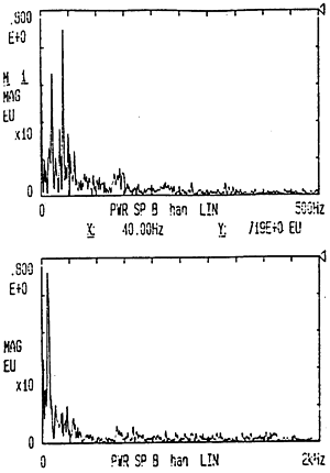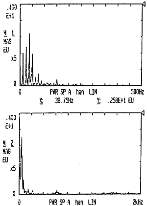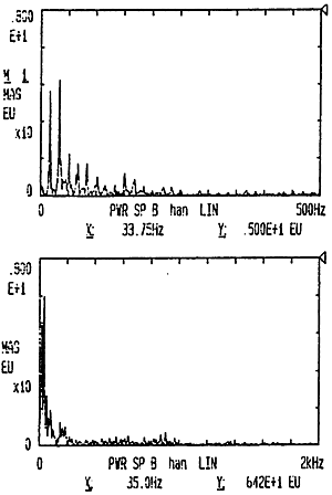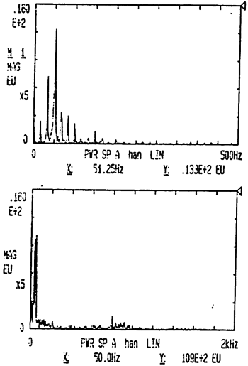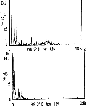 如圖6-14、圖6-15、圖6-16、圖6-17、圖6-18、圖6-19及圖6-20示,圖中示出了各種工況下,頻率范圍為0~500HZ和0~2KHZ速度自功率譜密度函數(shù)的對比,從圖中可以看出,速度自功率譜密度函數(shù)值主要集中在500HZ頻率范圍內,這樣,我們以0~500HZ的范圍來計算均方根速度的精度是足夠的。根據(jù)CF-355內部設置知時間