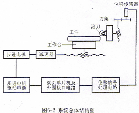 整個系統(tǒng)由數(shù)控制計(jì)算機(jī)軟硬件、步進(jìn)電機(jī)伺服機(jī)構(gòu)、位移傳感器和機(jī)床四大部分組成。系統(tǒng)總體結(jié)構(gòu)如圖6-2所示。改造后的機(jī)床實(shí)物照片見附錄。