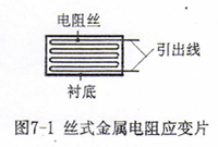 金屬電阻應變片有絲式應變片和箔式應變片等不同形式。本實驗采用絲式應變片,其結(jié)構如圖7-1所示。它是用一根金屬細絲按圖示形狀彎曲后用膠粘劑貼于用紙或有機聚合物薄膜等材料制成的襯底上,電阻絲兩端焊有引出線。
