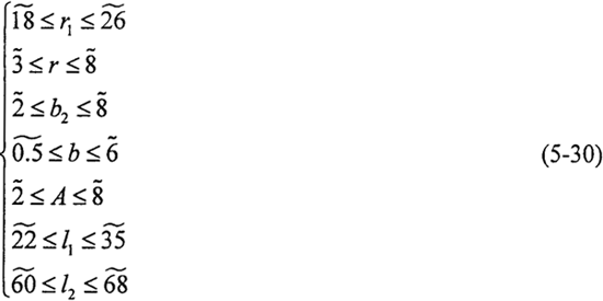 x=[x1,x2,x3,x4,x5,x6,x7]=[r1,r,b2,b,A,l1,l2] (5-18)