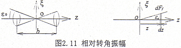 設(shè)內(nèi)、外齒輪軸線間有一相對轉(zhuǎn)角振幅ε0,如圖2.11所示,在齒z處dz上的摩擦力