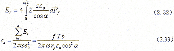 設(shè)內(nèi)、外齒輪軸線間有一相對橫向振幅δ0,如圖2.10所示,則第i對齒面相對滑動的位移為δi=δ0/cosα,齒面滑動摩擦力為Ff=fT/rpncosα,其中f為齒面間的滑動摩擦系數(shù),第i對齒對上的摩擦力消耗的能量為Ei=4Ffδi